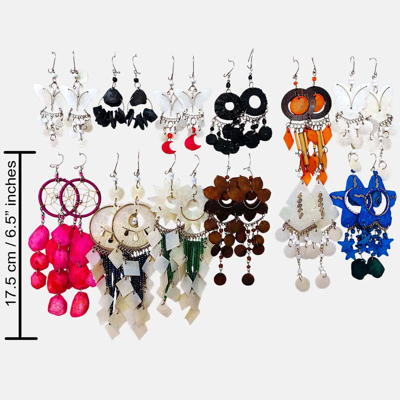 Fish scale earrings are a beautiful example of organic craftsmanship. This wholesale pack includes 12 assorted handmade pairs created from natural fish scales and designed for boutiques, gift shops, and resellers looking for distinctive artisan pieces.
