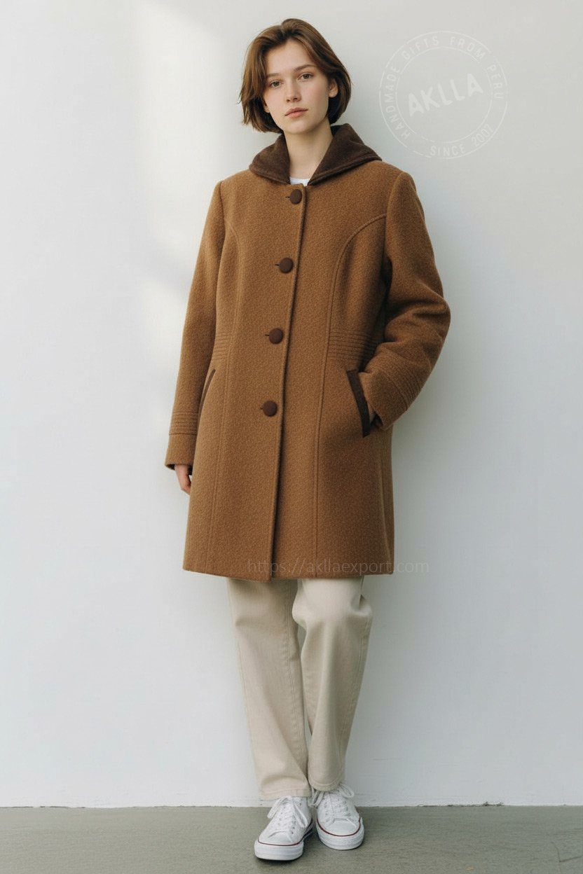 For anyone who appreciates natural fibers, artisan work, and long-lasting garments, this premium baby alpaca coat is an excellent addition to the wardrobe. It provides warmth without compromising elegance, adapts to a wide range of outfits, and brings the touch of Peruvian craftsmanship into everyday life.