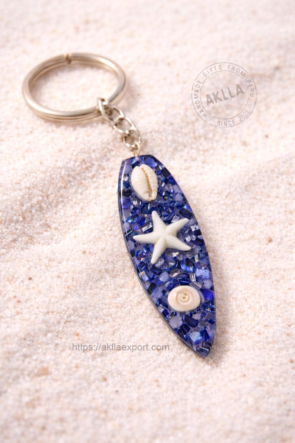 Every piece in this surfboard keychain collection is individually handmade, meaning no two are completely alike. Small natural variations in the crystal fill and shell placement are part of what gives each keychain its unique character — handcrafted with genuine artisan soul and real care. What makes this surfboard keychain truly special is the attention to detail in every piece. The resin is poured by hand, the shells are individually placed, and the crystal fill catches the light from every angle — glittering and shining like a tiny piece of the ocean itself.