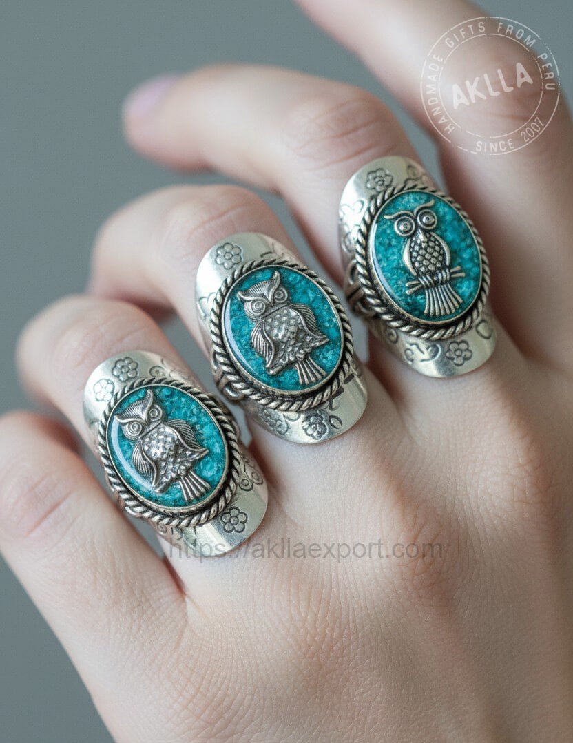Turquoise Ring – Handmade Alpaca Silver Owl Ring